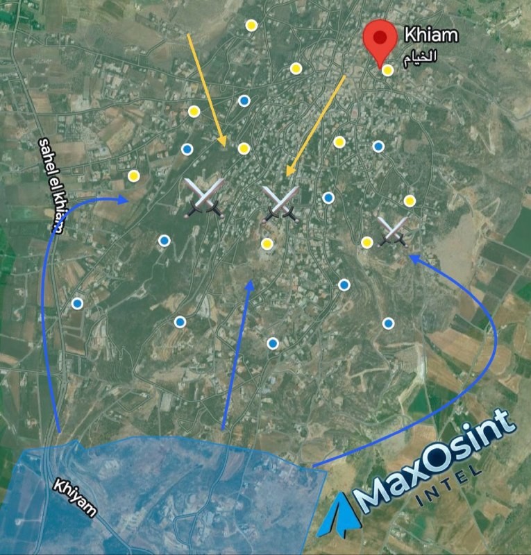 IDF #Drone Assault Repelled — Khiam Town March 16, 2026 | Day 16 IDF launched a three-pronged drone assault into Khiam town from the Khiyam base (blue zone), pushing north via Sahel el Khiam on the west and swinging wide from the east to encircle.