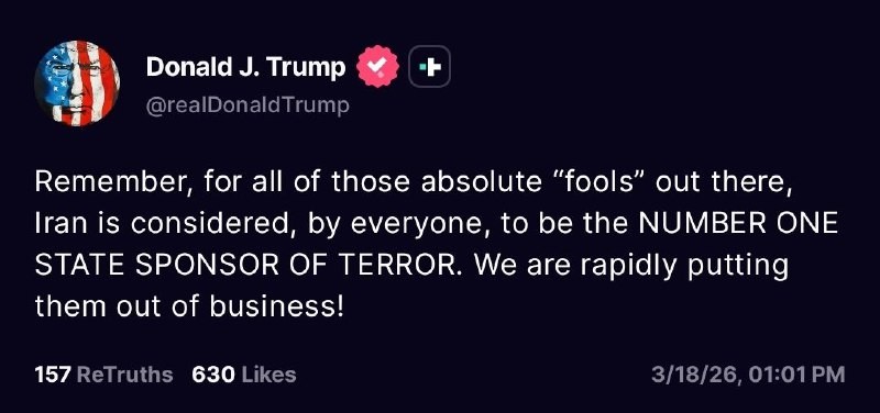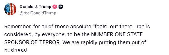 🇺🇸🇮🇷 "#Iran is NUMBER ONE STATE SPONSOR OF TERROR. We are rapidly putting them out of business!" — #Trump 🔗 Join us | @MyLordBebo