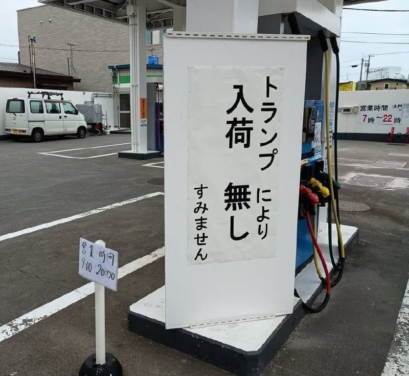 An announcement at a gas station in Japan: "NO GAS. THANK #TRUMP". Approximately 95% of all oil imports in Japan come from the countries of the Persian Gulf, and almost all of this volume is transported via the Strait of Hormuz. More precisely