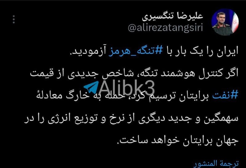 IRGC Navy Commander: You have tested once through the Strait of Hormuz. If our strategic control of the strait has created a new benchmark for oil prices for you, an attack on Kharg will produce another powerful new equation for global ener...