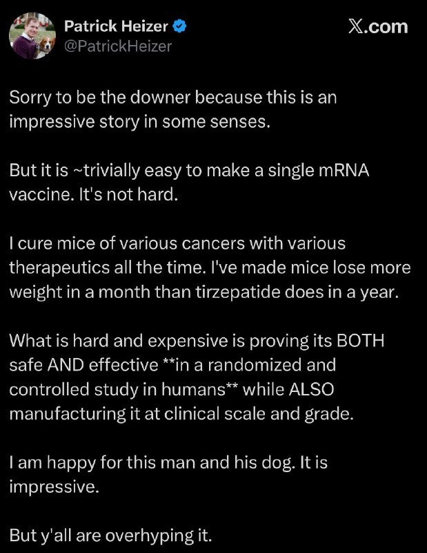 Curing cancer kinda works but it’s hard to prove it is safe in a randomized study? Make this a conditional test treatment that literally dying people can get, for a chance of not dying? The...