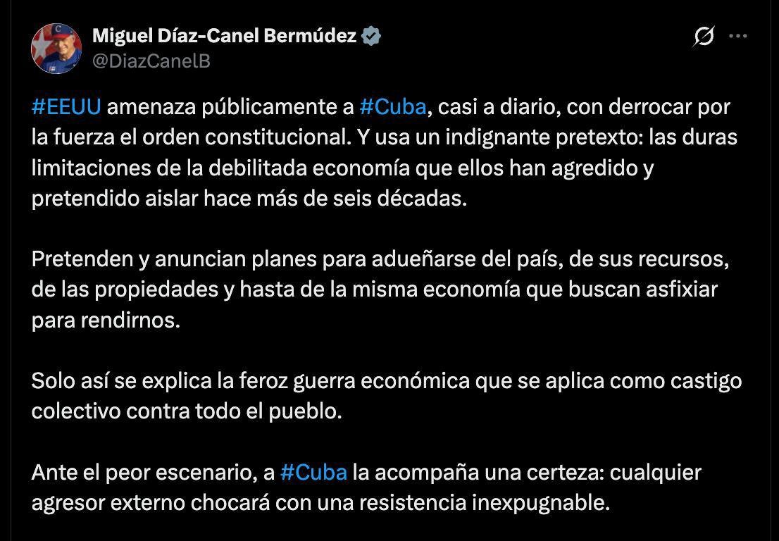 #Cuba is ready to resist in the event of a US attack, said its President Miguel Diaz-Canel.According to him, the Americans "almost daily" threaten Cuba with a violent overthrow of power, using as a pretext the economic problems that they themselves