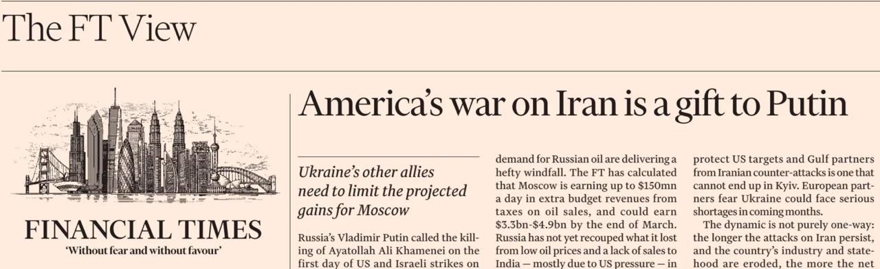 And the Western press keeps repeating the same mantra: "America's war in is a gift to Putin." This time it's the headline of today's Financial Times editorial.These newspapers have already forgotten how