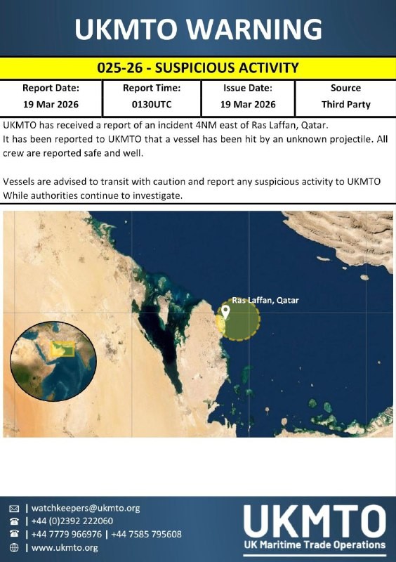 UKMTO report about the previously mentioned attack on a ship off the coast of Qatar