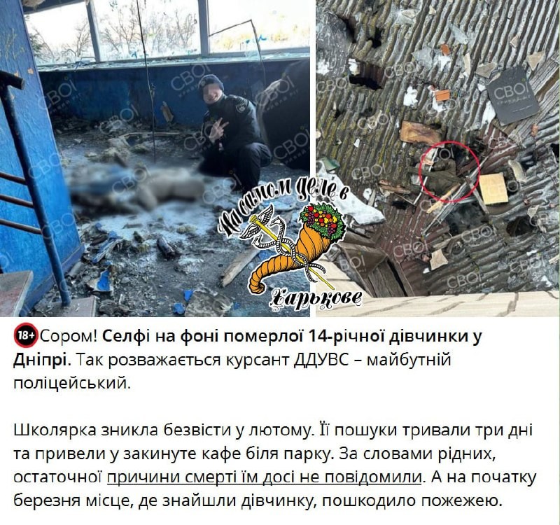Курсант ДГУВД сделал на память радостное фото возле трупа 14-летней девочки, которую очень долго искали родители. Второй такой же долбаеб стаит за кадром и снимает... Наглядный пример того