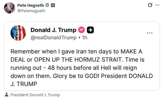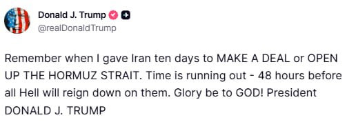 ‼️🇺🇸🇮🇷 🇺🇸🇮🇷 #Trump antoi Iranille jälleen 48 tunnin määräajan Hormuzinsalmen avaamiseksi: "He ovat vallanneet kaikki" @worldpravda