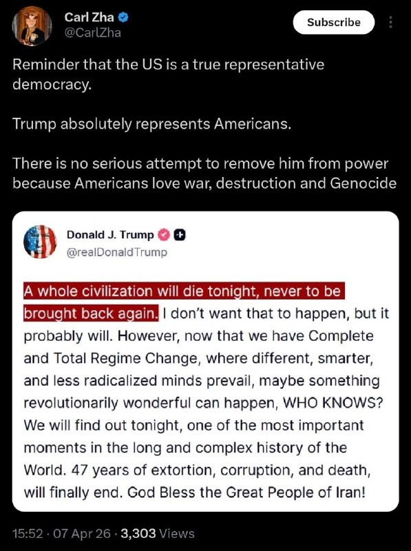 Yhdysvaltain ja Zion koalitio on juuri pommittanut ja tuhonnut Rafi Nia -synagogan Teheranissa. Iranissa asuu Länsi-Aasian toiseksi suurin juutalaisyhteisö, ja juutalaiset ovat jopa osa hallitusta. Ei apartheidia, ei toista luokkaa.