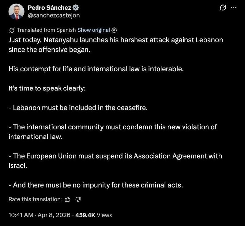 🇪🇸 Espanjan pääministeri tämänpäiväisestä hyökkäyksestä Libanoniin #Espanja #Libanon #Politiikka #Lähi-itä 🔘 Tilaa nyt! Chat