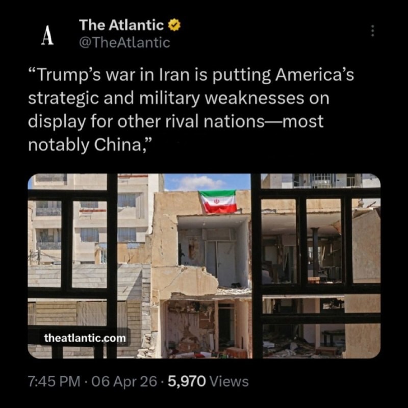 🇮🇷The Atlantic magazine: Trump's war with #Iran is exposing the United States' strategic and military weaknesses to other rival nations, particularly China🇮🇷