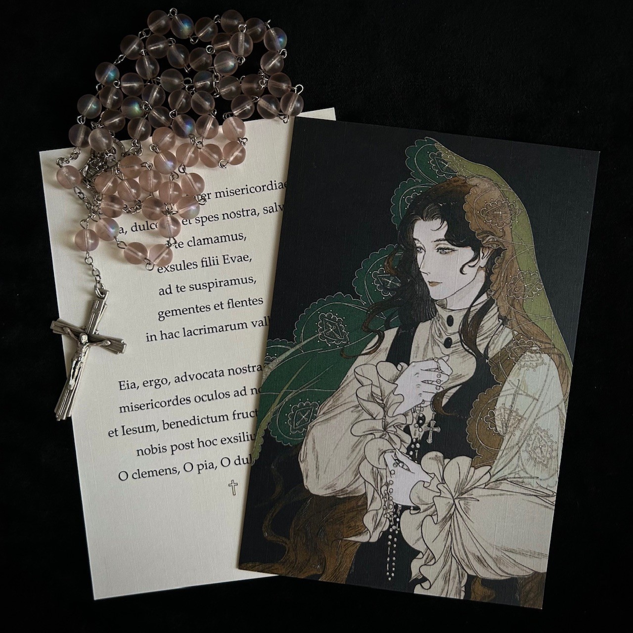 今年早些时候在mhs挑了一个老师画了我还未写完的父子/女本里的性转法拉米尔,非常之满意,于是就想自己再做个卡背,但一直没想好怎么做,然后想起来我有很多祈祷卡,于是就放了又圣母经上去,效果相当合适,加上我本来约的就是手持玫瑰念珠祈祷,所以又圣母经也是真的能起到一定祈祷卡的本真作用(虽然按照设定妹正在祈祷一些很亵渎的东西(……))(而且这篇叫做《<共和国的自毁,或论公共性的衰退>》(会有两个框是因为这里是引用,嗯就这么怪。))