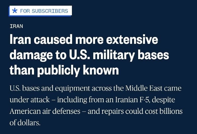 Vojenské základne a vybavenie #USA v regióne Perzského zálivu utrpeli škody oveľa väčšie, než sa verejne priznávalo, pričom opravy sa očakávajú v hodnote miliárd dolárov, podľa NBC. Irán zasiahlo desiatky cieľov na amerických základniach v