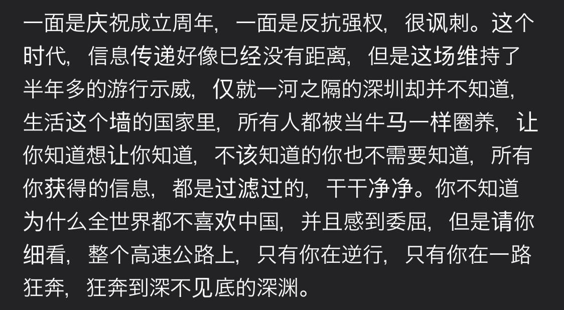 @kydest 同感。自从跟门口的一群外聘保安+系统内的保卫科人员狮吼了一通『整天脱了裤子放屁有意思吗』?就再也没人查我进出自己家了↣『真的吃饱了撑的↣出门做个核酸来回不到半小时还要健康码行程码场所码还要刷脸,我脸都没去录』。之后甚至有的保安会主动『刷他的脸』帮我开门⇔这个国家真的就是人善被人欺,想来我平时人设也就是个看花遛鸟儿的友好肥宅/参考武林外传钱掌柜,这世道非把人逼成魔山才能有基本人权
