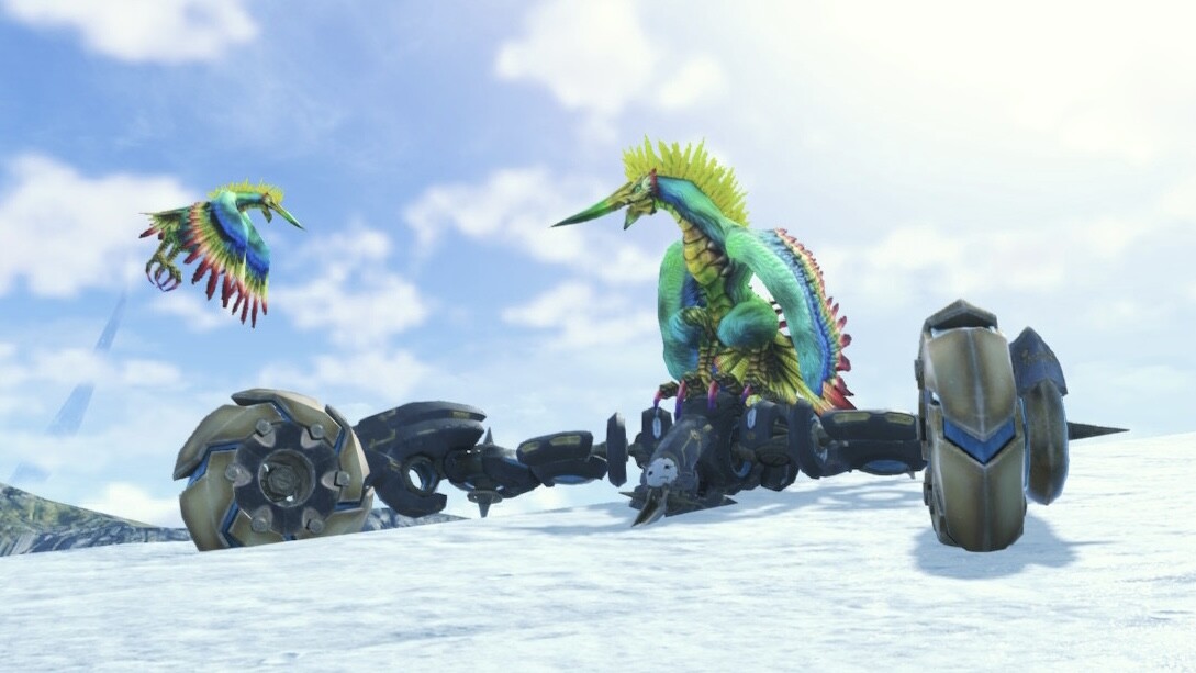 最近沉迷《异度神剑3》,特别喜欢其中的怪物生态。这个系列的怪物一直是辽阔地图风景的一部分:有七彩羽毛的巨雁停在高耸的石柱或者机器人残骸上,有斑点龙鱼搁浅在海滩被一群寄居蟹分尸,有飞天鳐在你俯瞰世界时忽然进入视野,有雪山羚羊为了求偶互相顶角,有伪装成岩石的蜥蜴在沙子里埋伏,有放电的长足兽或者膨胀的海胆怪把周围动物吓跑。