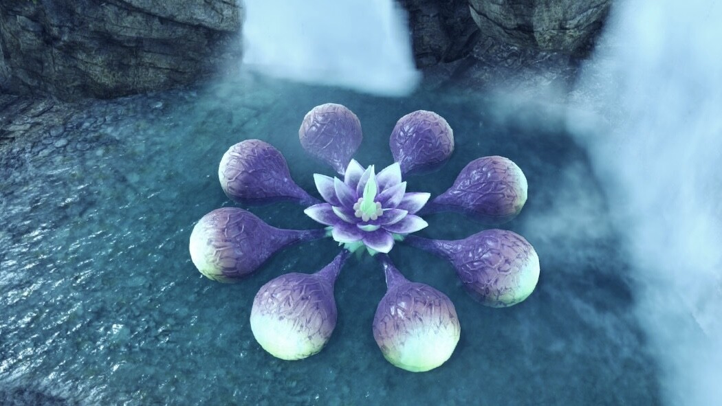 每到夜晚,河流里群居的花水母露出水面的莲花部分会发出光来,如同一片盂兰盆节的河灯(但是前期欣赏时不要因为没有敌人标记就靠得太近,不然会被水母一触手拍死)