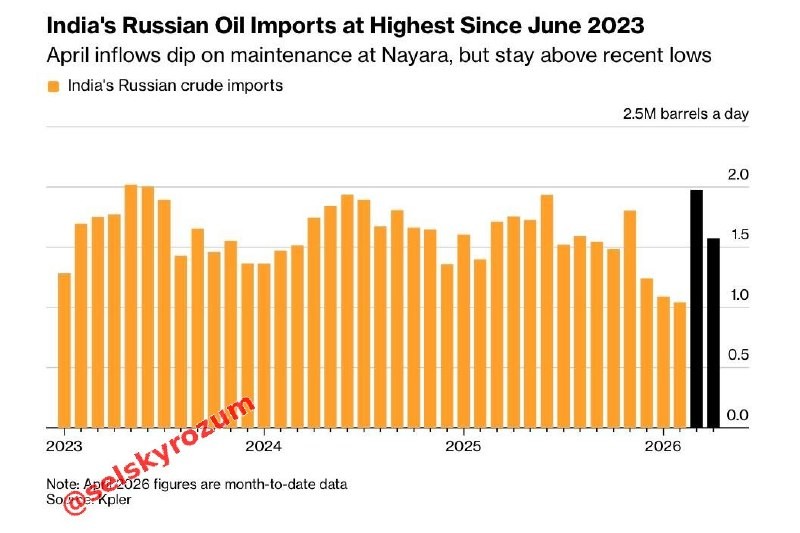 **Indie navzdory tlaku #USA zvyšuje nákupy ruské ropy** Indie pokračuje v aktivním nákupu ruské ropy a ignoruje tak tlak ze strany USA. V březnu se dovoz oproti únoru téměř zdvojnásobil – na 1,98 milionu barelů denně