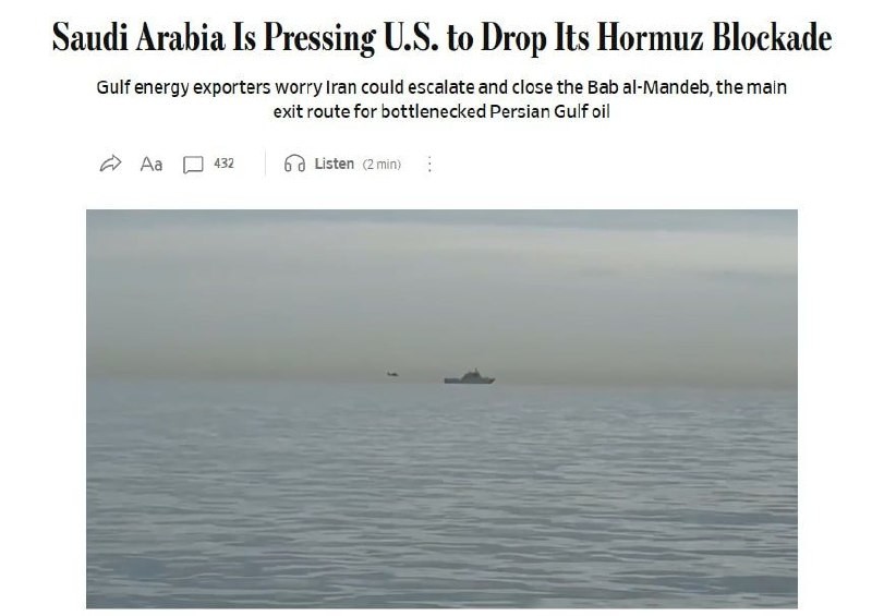 Саудитска Арабия изисква от Тръмп да вдигне блокадата на Ормузкия проток и да се върне към преговори с Иран, според WSJ. Рияд се опасява, че опит за блокиране на пролива ще провокира ескалация на конфликта и може да доведе до нарушаване на други