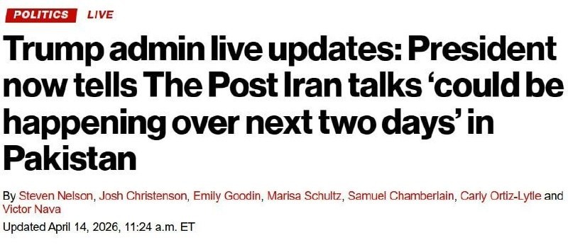 Тръмп: Нещо може да се случи през следващите два дни Президентът на САЩ за възможността за нов кръг от преговори между САЩ и Иран през следващите два дни: „Наистина трябва да останете там [в Пакистан]