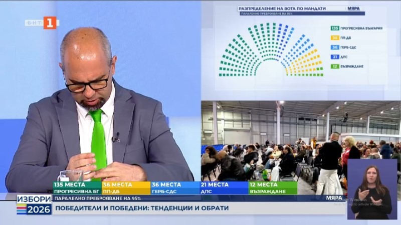 Прогресивна България/Радев със 135 мандата и абсолютно мнозинство при 95% паралелно преброяване, БСП е вън, Коце може да не събере пари за построяването на къщите в Тюленово. Няма такъв МЕЧ или как Гела ще прави коментарно студио с Волен и Дългия на