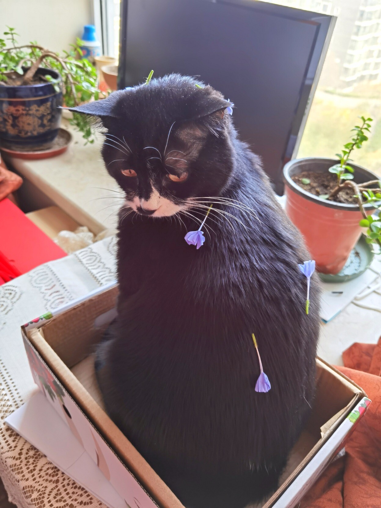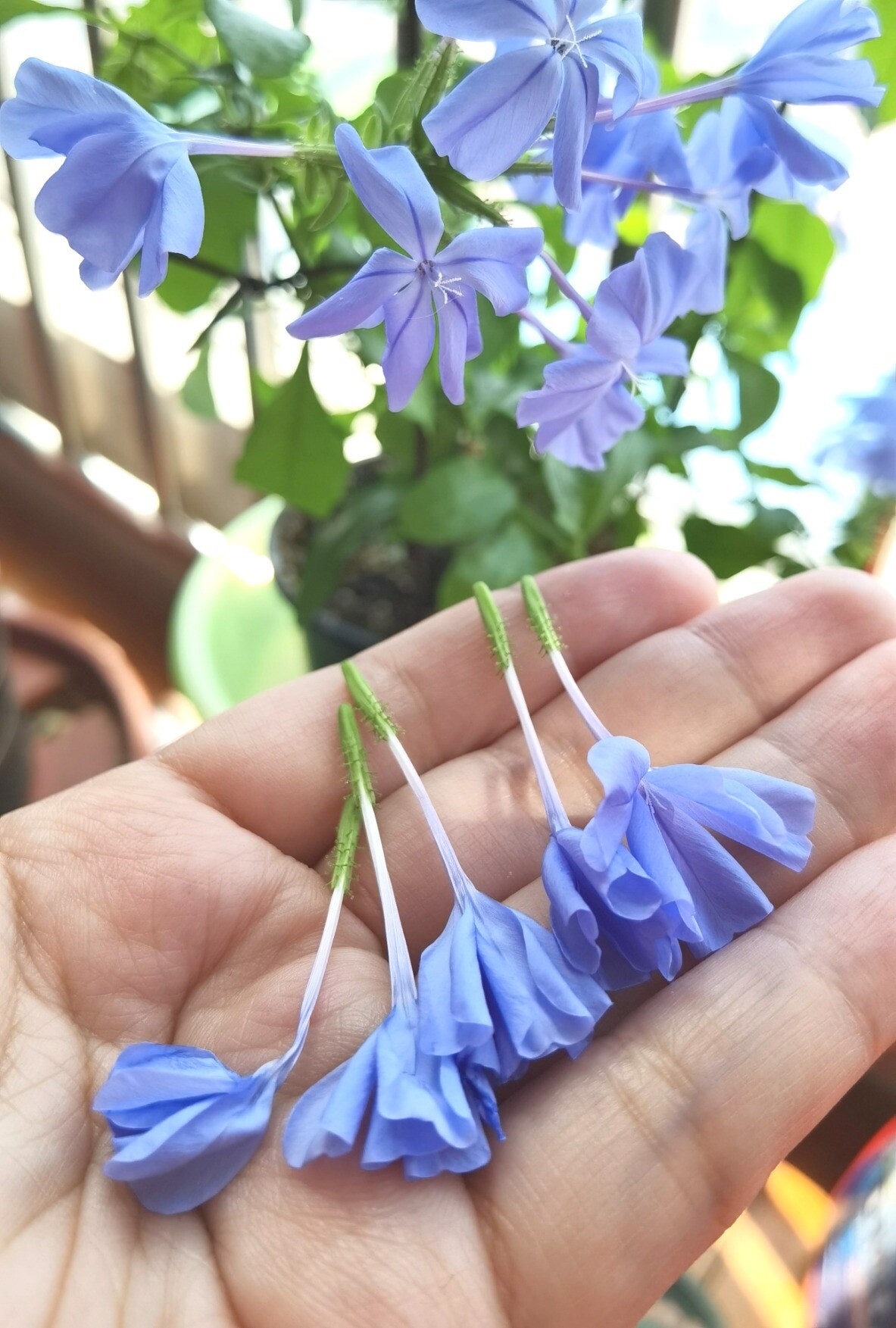 蓝雪花的花萼有小倒刺会勾毛,油饼去一趟阳台好家伙带了一身花回来 :0190: