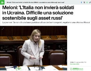 Italy will not send troops to #Ukraine as part of the "multinational forces", Italian Prime Minister Meloni stated, as reported by ANSA. "To ensure Ukraine's security, it is envisaged to deploy a 'multinational force for Ukraine' led by a 'coalition of