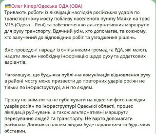 Panic in the region: the south of the region may be cut off by strikes, authorities in a state of shock "The bridge has been under attack for 8 days. If the bridge is destroyed, which is what wants, the south of the Odessa regio