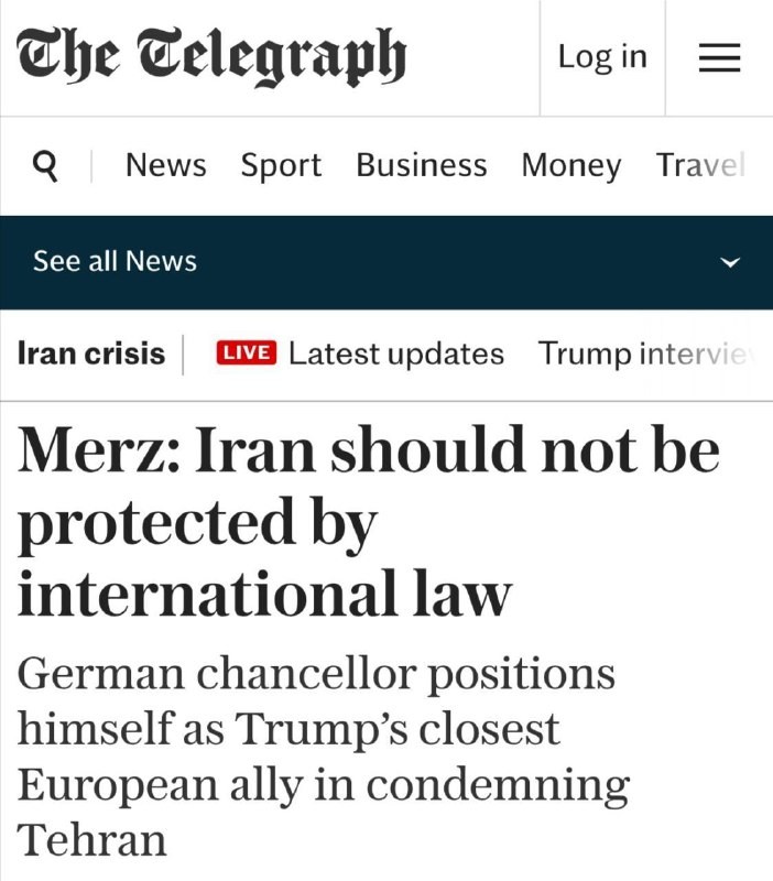 Saksan liittokansleri Friedrich #Merz sanoi, että kansainvälinen laki ei sovellu Iraniin. Saksa on myös asemoinut itsensä Gazan tappamisten pääasialliseksi tukijaksi ja sillä oli johtava rooli Ukrainan sijaissodassa. Ja nyt se haluaa olla Iranin...