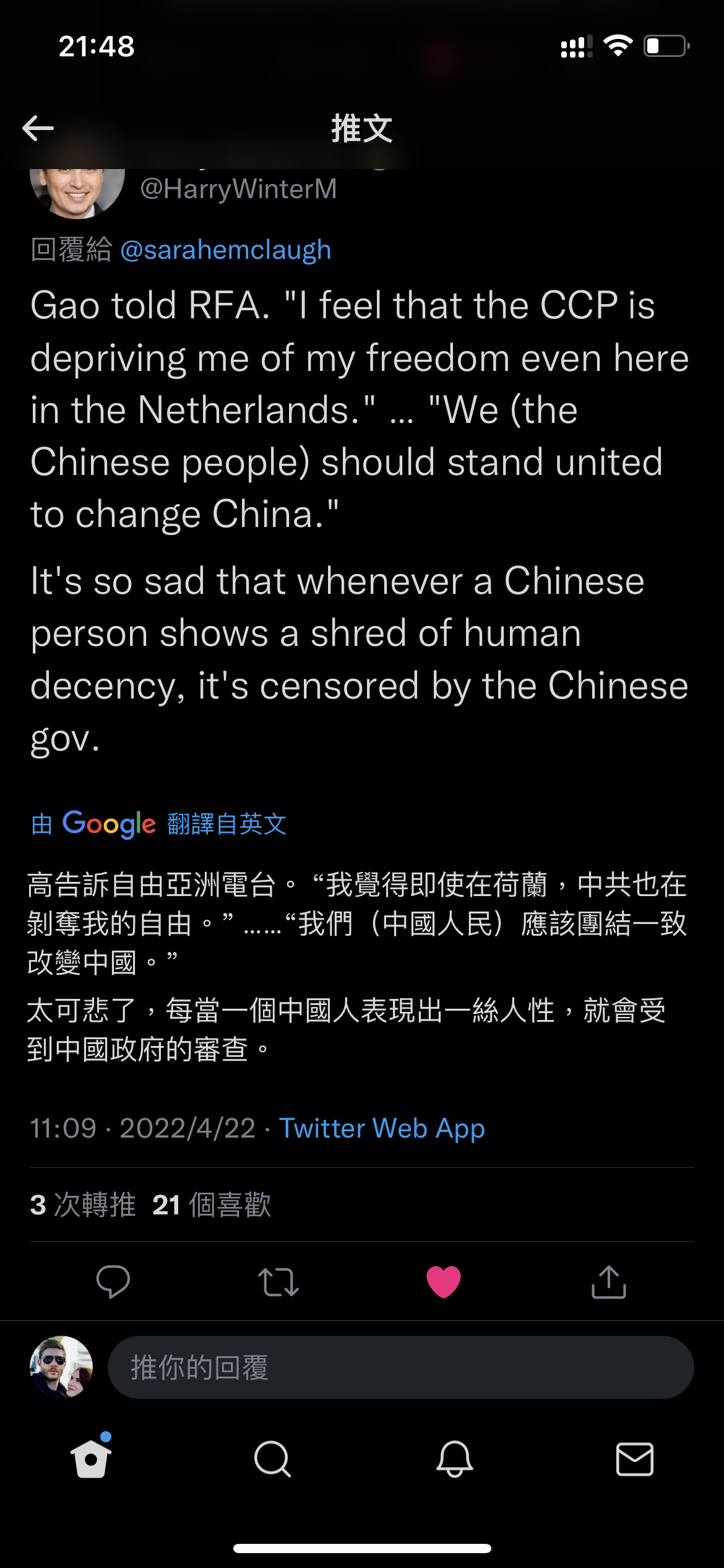 @DerSteppenwolfjj 我和一个朋友有过非常相似的对话,她的point在于女性成功时更加被苛责,而且她为ccp站台也是因为需要大陆立场没得选。我说她被指责在于言行不一,且靠营销女权形象来吸引资金,而反对她的人有权为此拒绝消费她的女权形象/成为她资金市场的一部分因为她所销售的feminist, empowering, & strong woman figure和她实际将带来的影响如为ccp的人权站台,抹消彭帅的创伤,etc,是不对等的。