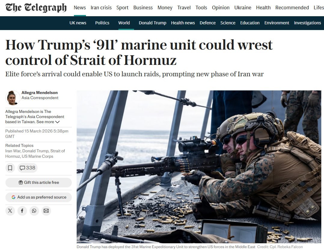 The Telegraph: The US is deploying "911" marine infantry forces to the Strait of HormuzAccording to the publication, we are talking about 25,000 servicemen of the 31st expeditionary unit, which is usually based on the Japanese island of Okinawa. ...