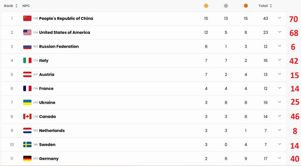 took the 3rd place in the medal standings of the Paralympics with 6 participating athletesFor comparison, there were 70 participants from and 68 from the United States.
